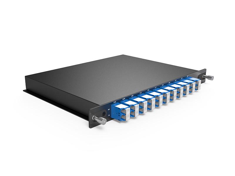 MUX/DEMUX DWDM a 8 canali, supporta 8 canali di trasmissione differenziale a 800G su due fibre ottiche per la trasmissione punto-punto. Funziona in sistemi di trasferimento IDC.