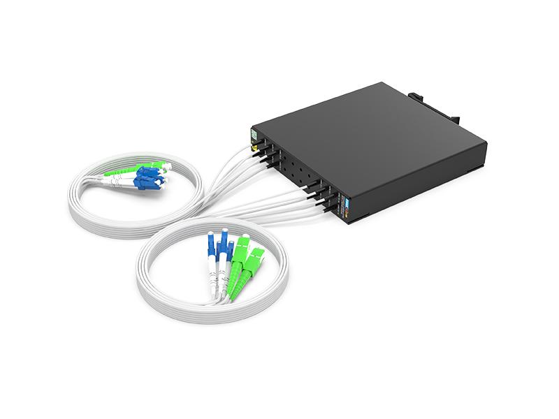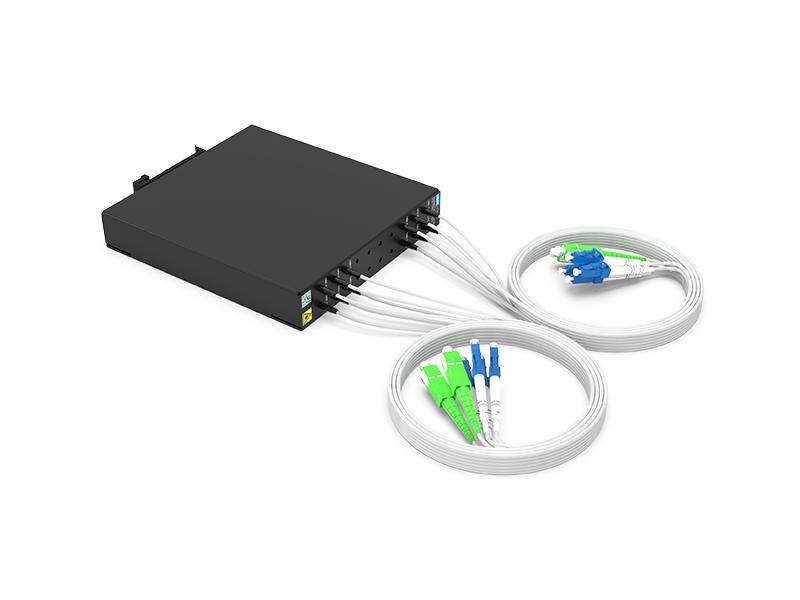 Il supporto OADM CWDM 2CH supporta 8 canali di differenza verso ovest e 8 canali di differenza verso est (elimina e aggiungi 8 canali sul lato di differenza).
