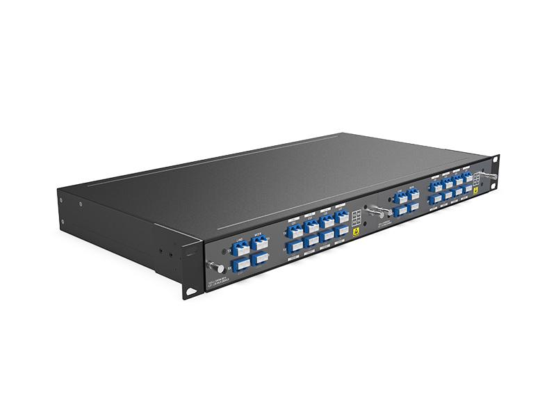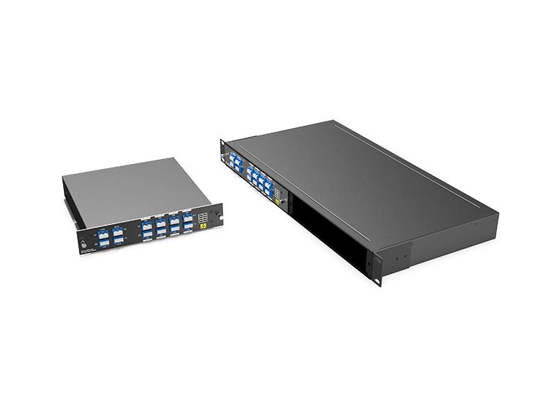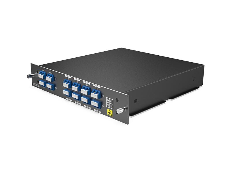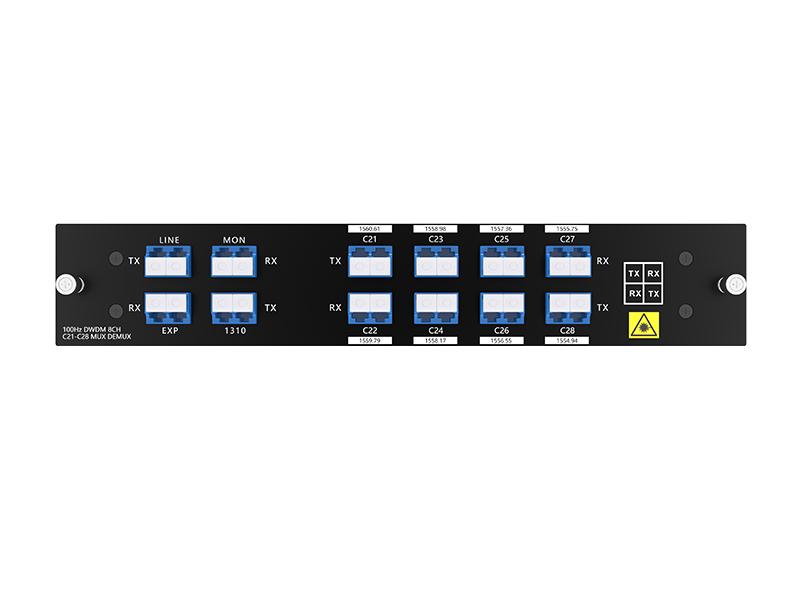 Il DWDM a 8 canali è un dispositivo completamente passivo e modulare LGX, che può essere inserito in un rack 1U a 2 slot; la perdita di inserzione del prodotto è <2,4 dB. In combinazione con gli amplificatori DWDM e il dispositivo DCM, il sistema di trasferimento DWDM a 8 canali può supportare una trasmissione a lunga distanza.