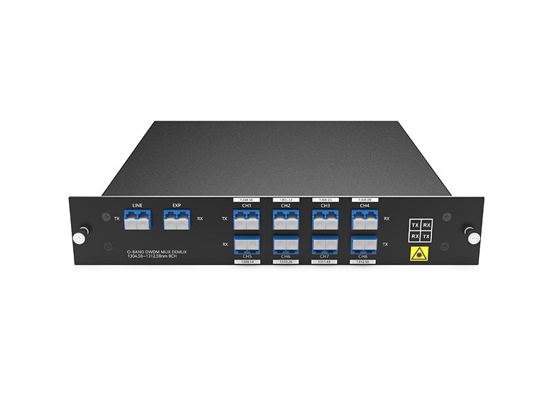 Il MUX DWDM O-BAND a 8 canali è progettato da FIBERWDM, è un dispositivo DWDM totalmente passivo e supporta una bassa perdita di inserzione (porte con lunghezza d'onda <3,0 dB). Le onde sono 1304,58/1305,72/1306,85/1308,00/1309,14/1310,28/1311,43/1312,58 nm, supporta attività commerciali a 8 canali su due trasmissioni in fibra.