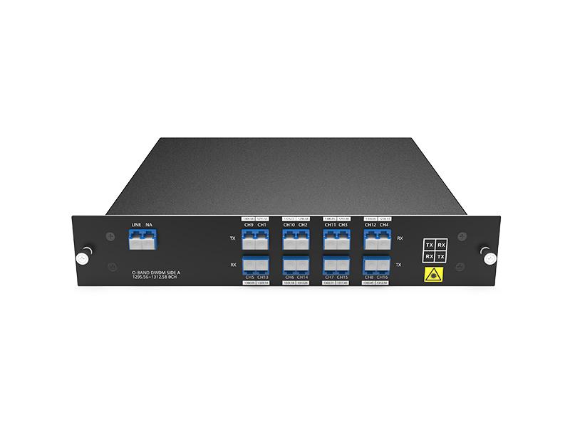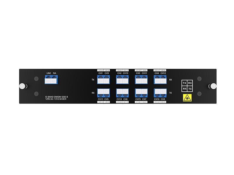 Il multiplexer/demultiplexer DWDM a banda O a 8 canali (16 lunghezze d'onda) su fibra singola è progettato da FIBERWDM, è un dispositivo DWDM totalmente passivo e supporta una bassa perdita di inserzione (porte di lunghezza d'onda <4,8 dB). Le lunghezze d'onda sono 1295,56/1296,68/1297,80/1298,93/1300,05/1301,18/1302,31/1303,45/1304,58/1305,72/1306,85/1308,00/1309,14/1310,28/1311,43/1312,58 nm e supporta 8 canali di trasmissione su una singola fibra.